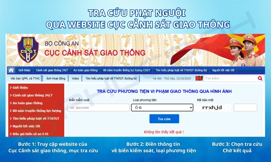 Tra cứu phạt nguội qua website của Cục cảnh sát giao thông