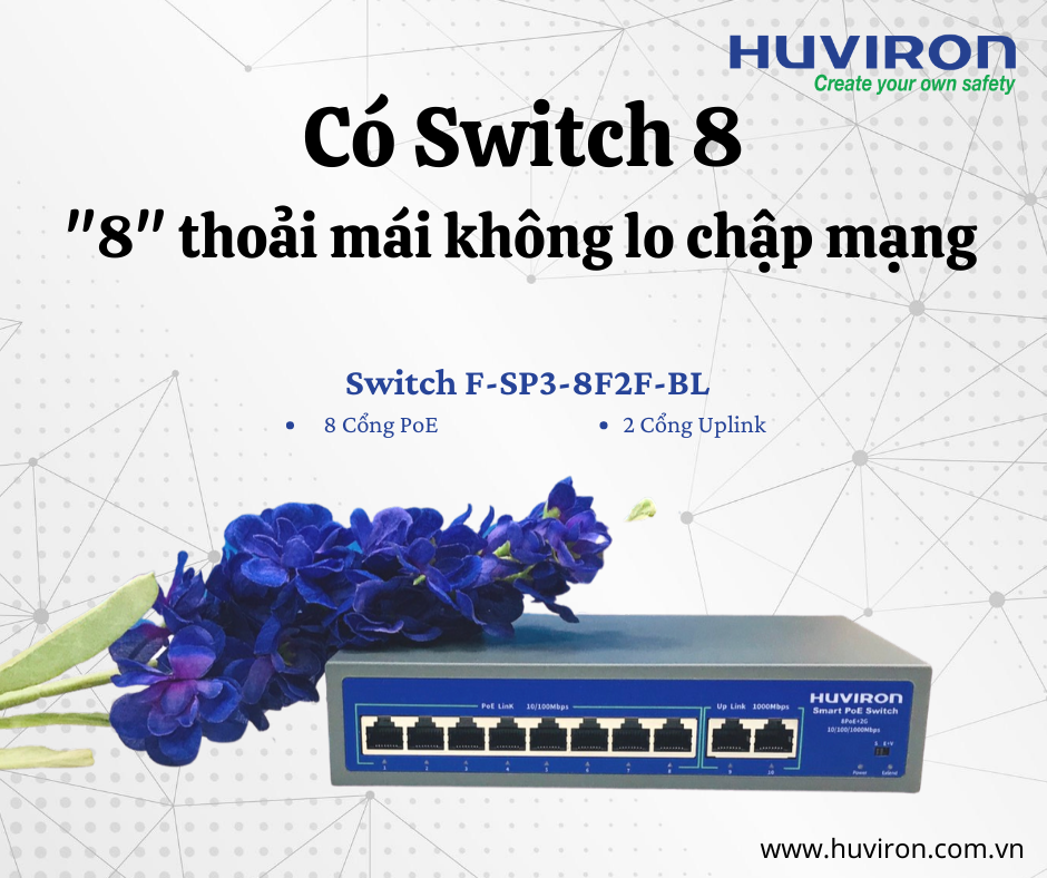 Huviron F-SP3-8F2F-BL là Switch PoE 8 cổng, sử dụng để cấp nguồn điện cho thiết bị vừa truyền dữ liệu. Sản phẩm chất lượng, hoạt động ổn định, giá cả được bán hợp lý