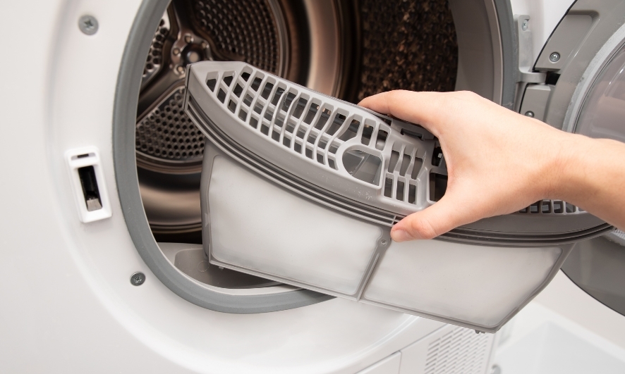 - Định kỳ kiểm tra và bảo dưỡng máy sấy và các bộ phận dễ tích tụ bụi như bộ lọc, ống thông gió, cửa máy... Trong đó, ống thông gió là bộ phận quan trọng giúp thoát khí nóng ra ngoài, đảm bảo độ tản nhiệt của thiết bị nhưng có thể bị tắc nghẽn hoặc hư hỏng sau thời gian sử dụng. Bộ lọc là thiết bị ngăn xơ vải và bụi bẩn nên nếu không được làm sạch thường xuyên sẽ dễ tích tụ nhiều bụi bẩn, ảnh hưởng đến hoạt động của máy sấy. Ngoài ra, cửa máy cũng cần được lưu ý khi vệ sinh bởi nếu lớp gioăng cửa không đảm bảo sẽ khiến cửa không đóng khít, thoát khí nóng ra ngoài gây ảnh hưởng hiệu quả hoạt động và tăng nguy cơ cháy nổ.